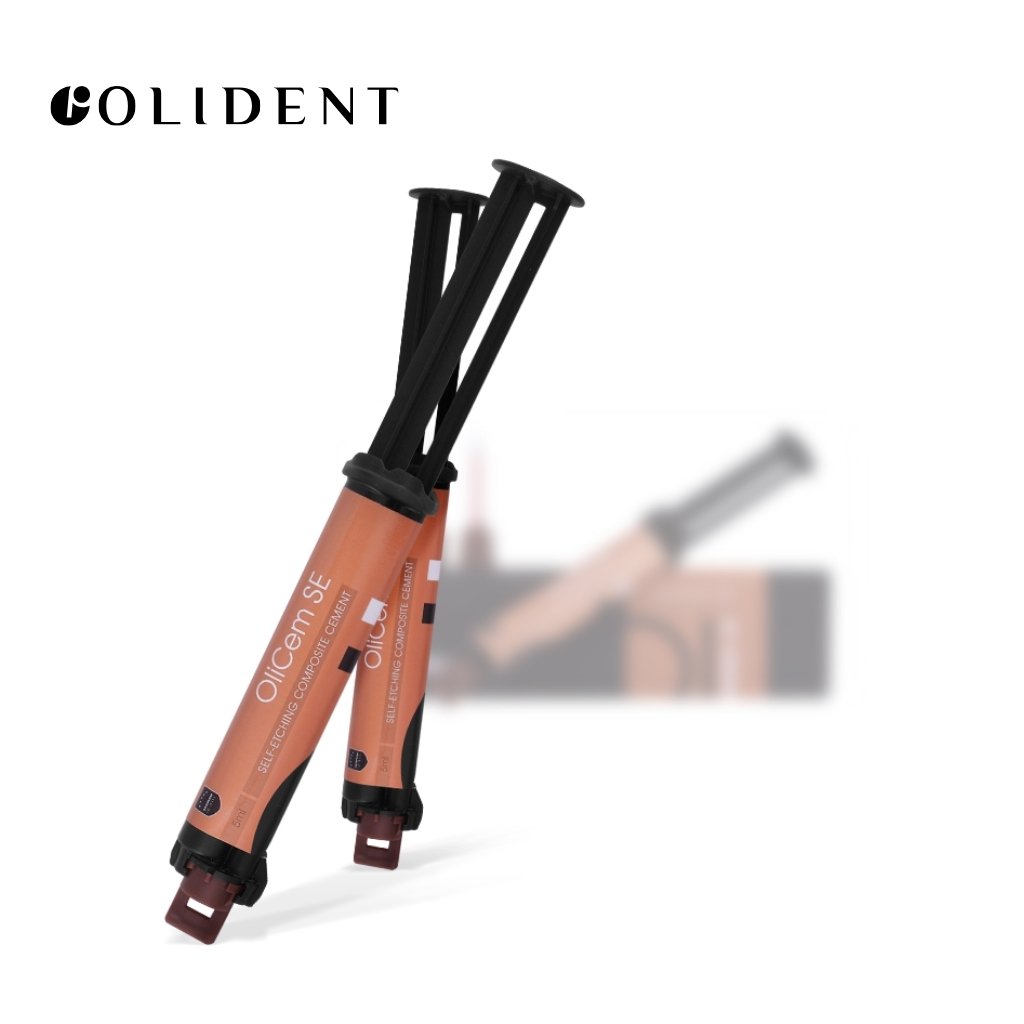 OliCem SE is a self-etching, dual-cure cement intended for the final fixation of restorations. When using OliCem SE, conditioning and bonding of tooth tissues is unnecessary. OliCem SE is self-neutralizing. OliCem SE is based on methacrylates and inorganic fillers. The filler content is 50% (by weight) and 45% (by volume). The volumetric mixing ratio is 4:1 base/catalyst.